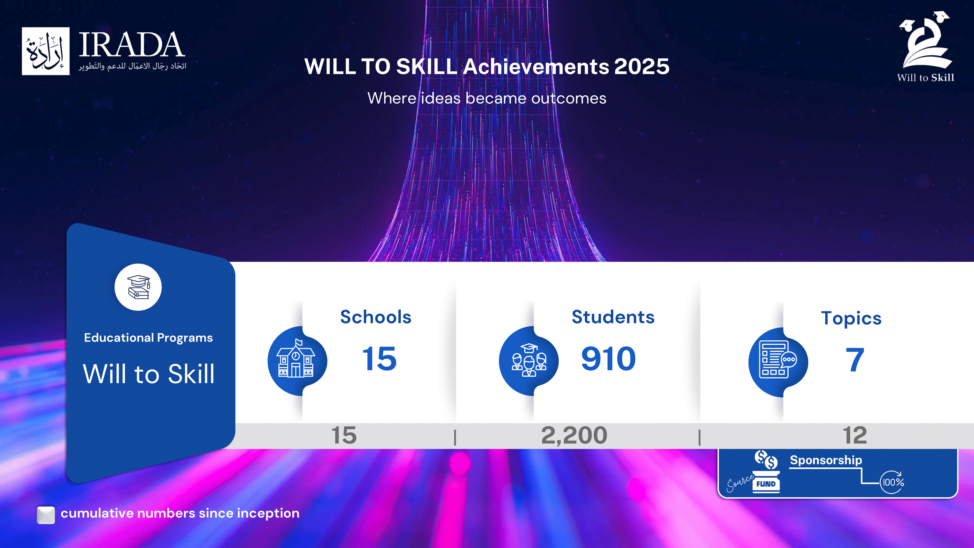 باختصار، Will to Skill   هو برنامج متكامل لتمكين الشباب يجمع بين تنمية المهارات العملية، الإرشاد، والتعرف على البيئة الأكاديمية، مع توسع ملحوظ في المرحلة الرابعة للوصول إلى طلاب ومجتمعات أكثر.