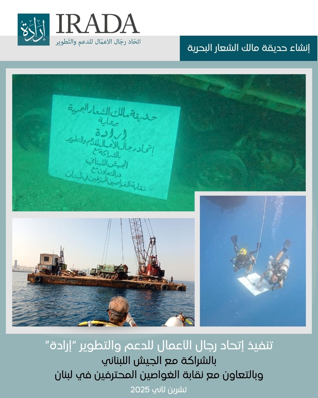 وبالتعاون مع نقابة الغواصين المحترفين في لبنان. وعليه، فقد تم إنزال الآليات